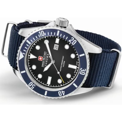 The watch is 10 ATM. This means the watch is suitable for swimming. The watch comes with Swiss Military 3+2.