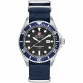 This Swiss Military Hanowa watch has a case made of stainless steel with a diameter of 44 mm and is fitted with a textile band. Inside the case lies a Ronda movement and the watch features a Sapphire crystal.