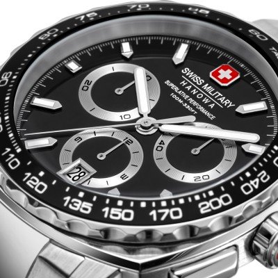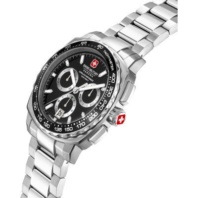 This Swiss Military Hanowa watch has a case made of stainless steel with a diameter of 41 mm and is fitted with a stainless steel band. Inside the case lies a Ronda movement and the watch features a Sapphire crystal.