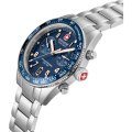 This Swiss Military Hanowa watch has a case made of stainless steel with a diameter of 43 mm and is fitted with a stainless steel band. Inside the case lies a Ronda movement and the watch features a Sapphire crystal.