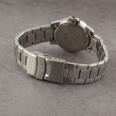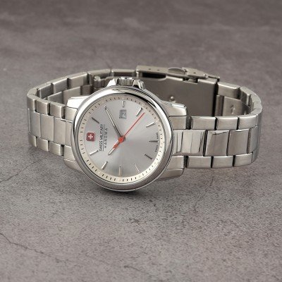This Swiss Military Hanowa watch has a case made of stainless steel with a diameter of 32 mm and is fitted with a stainless steel band. Inside the case lies a Ronda movement and the watch features a Sapphire crystal.