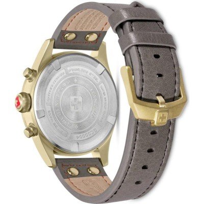 This Swiss Military Hanowa watch has a case made of stainless steel with a diameter of 43 mm and is fitted with a leather band. Inside the case lies a Ronda movement and the watch features a Sapphire crystal.