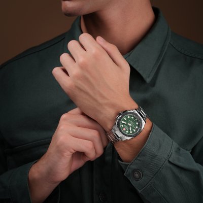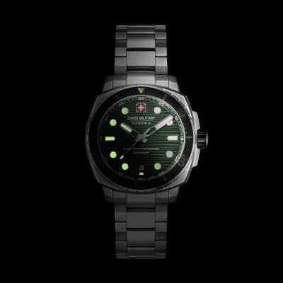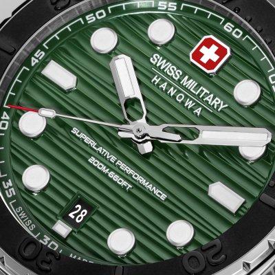 The watch is 20 ATM. This means the watch is suitable for diving. The watch comes with Swiss Military 3+2.
