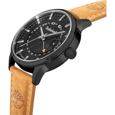 This Timberland watch has a case made of stainless steel with a diameter of 42 mm and is fitted with a leather band. Inside the case lies a Ronda movement and the watch features a Mineral crystal.