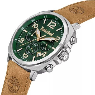 This Timberland watch has a case made of stainless steel with a diameter of 44 mm and is fitted with a leather band. Inside the case lies a Sunon movement and the watch features a Mineral crystal.