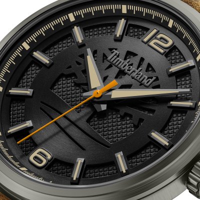 This Timberland watch has a case made of metal alloy with a diameter of 43 mm and is fitted with a leather band. Inside the case lies a Seiko movement and the watch features a Mineral crystal.