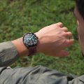 This Timberland watch has a case made of stainless steel with a diameter of 42 mm and is fitted with a leather band.