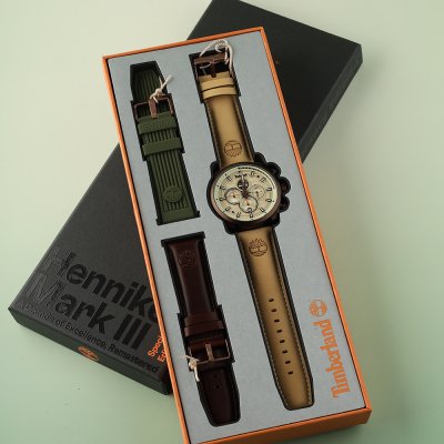 This Timberland watch has a case made of Aluminum with a diameter of 46 mm and is fitted with a leather band. Inside the case lies a Seiko Instruments Inc. movement and the watch features a Mineral crystal.