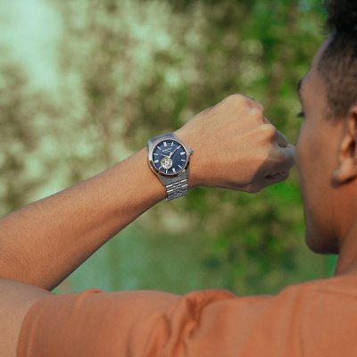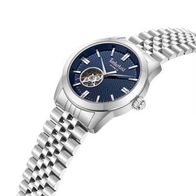 This Timberland watch has a case made of stainless steel with a diameter of 41 mm and is fitted with a stainless steel band. Inside the case lies a Seagull movement and the watch features a Mineral crystal.