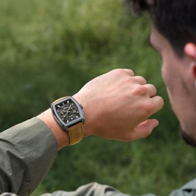 This Timberland watch has a case made of stainless steel with a diameter of 40 mm and is fitted with a leather band. Inside the case lies a Seiko Instruments Inc. movement and the watch features a Mineral crystal.