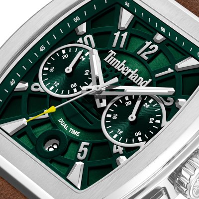 This Timberland watch has a case made of stainless steel with a diameter of 40 mm and is fitted with a leather band. Inside the case lies a Seiko Instruments Inc. movement and the watch features a Mineral crystal.