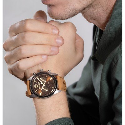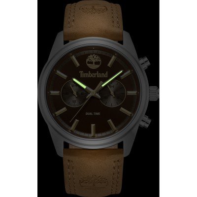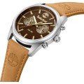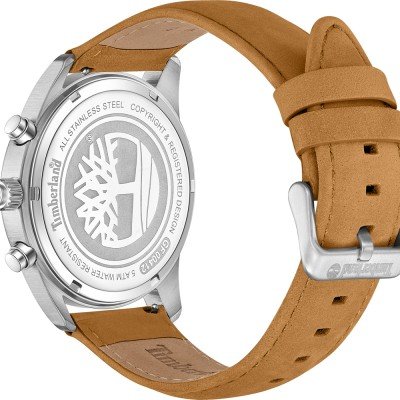 This Timberland watch has a case made of stainless steel with a diameter of 45 mm and is fitted with a leather band. Inside the case lies a Seiko movement and the watch features a Mineral crystal.