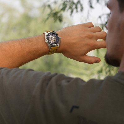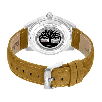 This Timberland watch has a case made of stainless steel with a diameter of 43 mm and is fitted with a leather band. Inside the case lies a Seagull movement and the watch features a Mineral crystal.