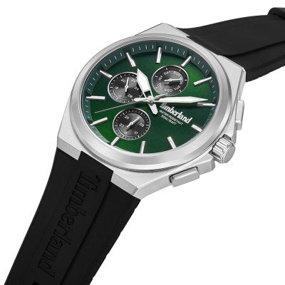 This Timberland watch has a case made of stainless steel with a diameter of 44 mm and is fitted with a rubber band. Inside the case lies a Seiko Instruments Inc. movement and the watch features a Mineral crystal.