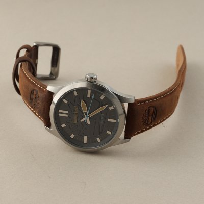 This Timberland watch has a case made of stainless steel with a diameter of 42 mm and is fitted with a leather band. Inside the case lies a Miyota movement and the watch features a Mineral crystal.