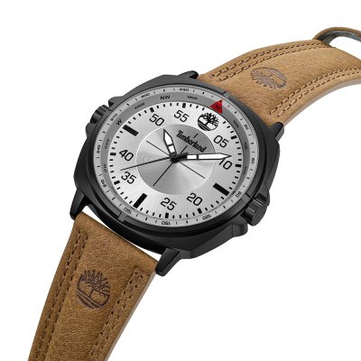 This Timberland watch has a case made of metal alloy with a diameter of 48 mm and is fitted with a leather band. Inside the case lies a Seiko movement and the watch features a Mineral crystal.