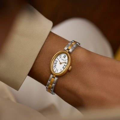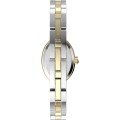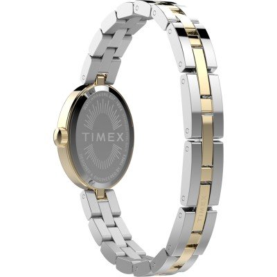 This Timex watch has a case made of metal alloy with a diameter of 19 mm and is fitted with a stainless steel band. Inside the case lies a Timex movement and the watch features a Mineral crystal.