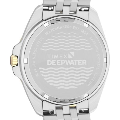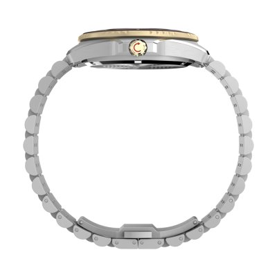 This Timex watch has a case made of stainless steel with a diameter of 40.5 mm and is fitted with a stainless steel band. Inside the case lies a Timex movement and the watch features a Sapphire crystal.