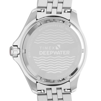 This Timex watch has a case made of stainless steel with a diameter of 42 mm and is fitted with a stainless steel band. Inside the case lies a Timex movement and the watch features a Sapphire crystal.