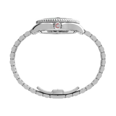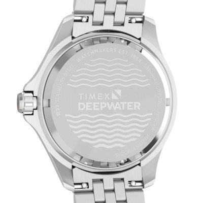 This Timex watch has a case made of stainless steel with a diameter of 42 mm and is fitted with a stainless steel band. Inside the case lies a Timex movement and the watch features a Sapphire crystal.