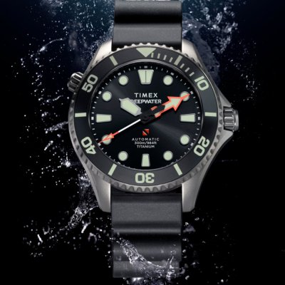 This Timex watch has a case made of titanium with a diameter of 44 mm and is fitted with a rubber band. Inside the case lies a Timex movement and the watch features a Sapphire crystal.