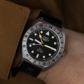 This Timex watch has a case made of titanium with a diameter of 41 mm and is fitted with a rubber band. Inside the case lies a Timex movement and the watch features a Sapphire crystal.