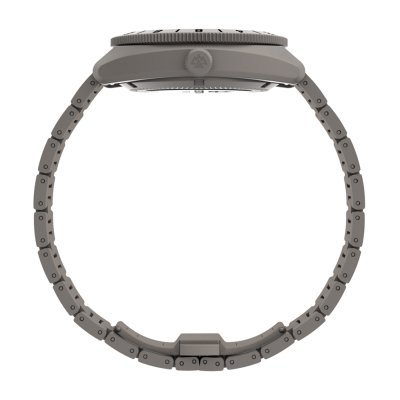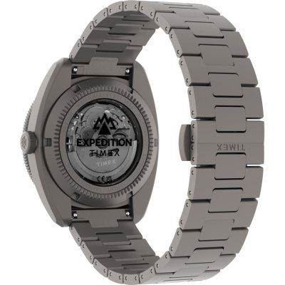 This Timex watch has a case made of titanium with a diameter of 41 mm and is fitted with a titanium band. Inside the case lies a Timex movement and the watch features a Sapphire crystal.