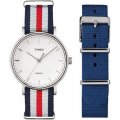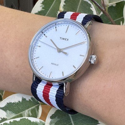 This Timex watch has a case made of metal alloy with a diameter of 37 mm and is fitted with a textile band. Inside the case lies a Timex movement and the watch features a Mineral crystal.