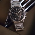 This Timex watch has a case made of stainless steel with a diameter of 40 mm and is fitted with a stainless steel band. Inside the case lies a Timex movement and the watch features a Acrylic crystal.