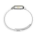 This Timex watch has a case made of metal alloy with a diameter of 23 mm and is fitted with a stainless steel band. Inside the case lies a Timex movement and the watch features a Mineral crystal.