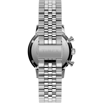 This Timex watch has a case made of stainless steel with a diameter of 40 mm and is fitted with a stainless steel band. Inside the case lies a Timex movement and the watch features a Acrylic crystal.