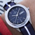This Timex watch has a case made of stainless steel with a diameter of 38 mm and is fitted with a textile band. Inside the case lies a Timex movement and the watch features a Acrylic crystal.