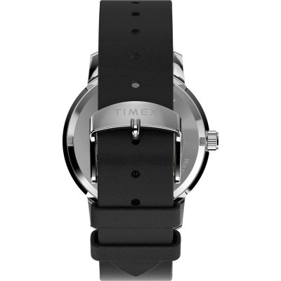 This Timex watch has a case made of stainless steel with a diameter of 40 mm and is fitted with a leather band. Inside the case lies a Timex movement and the watch features a Acrylic crystal.