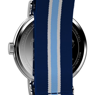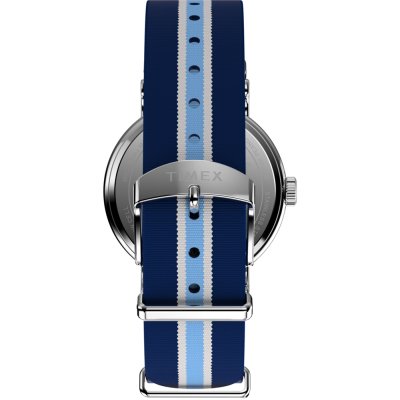 This Timex watch has a case made of metal alloy with a diameter of 37 mm and is fitted with a textile band. Inside the case lies a Timex movement and the watch features a Mineral crystal.