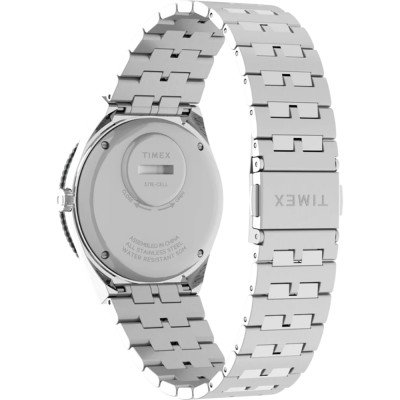 This Timex watch has a case made of stainless steel with a diameter of 38 mm and is fitted with a stainless steel band. Inside the case lies a Timex movement and the watch features a Mineral crystal.