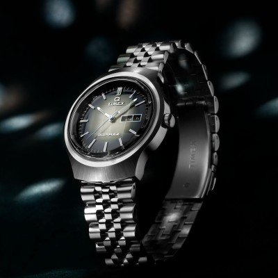 This Timex watch has a case made of stainless steel with a diameter of 38 mm and is fitted with a stainless steel band. Inside the case lies a Timex movement and the watch features a Acrylic crystal.