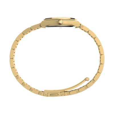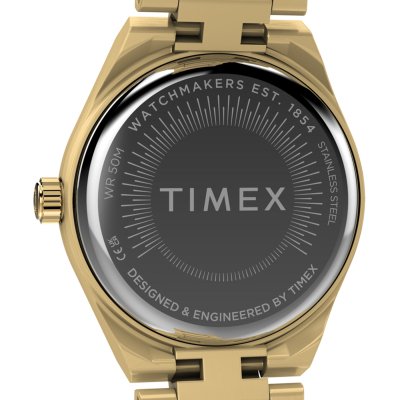 This Timex watch has a case made of stainless steel with a diameter of 24 mm and is fitted with a stainless steel band. Inside the case lies a Timex movement and the watch features a Mineral crystal.