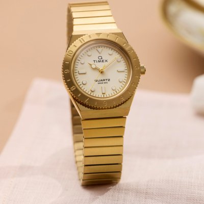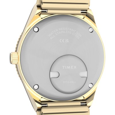 This Timex watch has a case made of stainless steel with a diameter of 30 mm and is fitted with a stainless steel band. Inside the case lies a Timex movement and the watch features a Acrylic crystal.