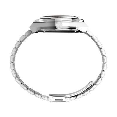 This Timex watch has a case made of stainless steel with a diameter of 40 mm and is fitted with a stainless steel band. Inside the case lies a Timex movement and the watch features a Acrylic crystal.