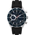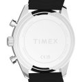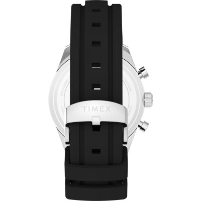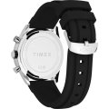This Timex watch has a case made of stainless steel with a diameter of 42 mm and is fitted with a rubber band. Inside the case lies a Timex movement and the watch features a Mineral crystal.