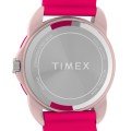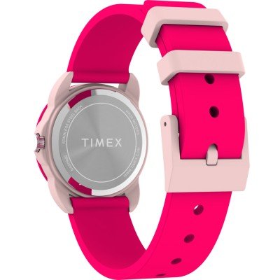 This Timex watch has a case made of Resin with a diameter of 30 mm and is fitted with a rubber band. Inside the case lies a Timex movement and the watch features a Acrylic crystal.