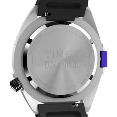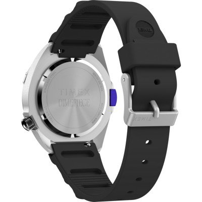 This Timex watch has a case made of stainless steel with a diameter of 36 mm and is fitted with a rubber band. Inside the case lies a Timex movement and the watch features a Mineral crystal.
