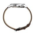 This Timex watch has a case made of metal alloy with a diameter of 40 mm and is fitted with a leather band. Inside the case lies a Timex movement and the watch features a Mineral crystal.