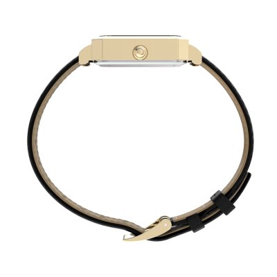 This Timex watch has a case made of metal alloy with a diameter of 21 mm and is fitted with a leather band. Inside the case lies a Timex movement and the watch features a Mineral crystal.
