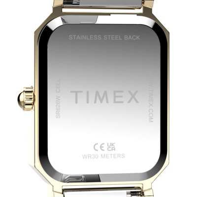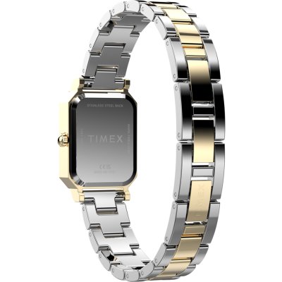 This Timex watch has a case made of metal alloy with a diameter of 21 mm and is fitted with a metal alloy band. Inside the case lies a Timex movement and the watch features a Mineral crystal.