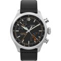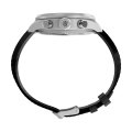 This Timex watch has a case made of stainless steel with a diameter of 43 mm and is fitted with a leather band. Inside the case lies a Timex movement and the watch features a Mineral crystal.