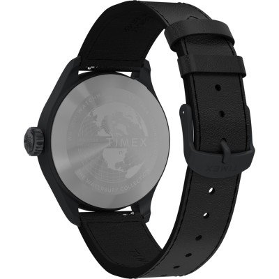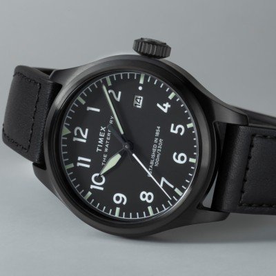 This Timex watch has a case made of stainless steel with a diameter of 41 mm and is fitted with a leather band. Inside the case lies a Timex movement and the watch features a Mineral crystal.