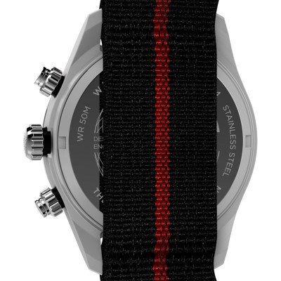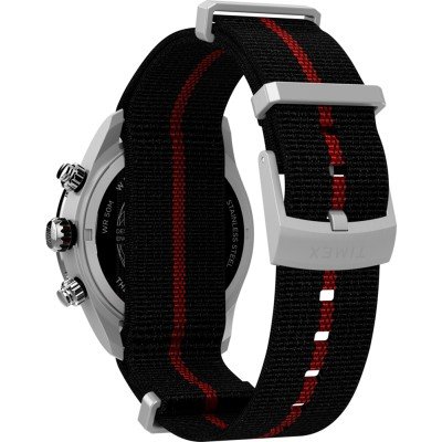 This Timex watch has a case made of stainless steel with a diameter of 39 mm and is fitted with a textile band. Inside the case lies a Timex movement and the watch features a Mineral crystal.