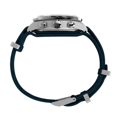 This Timex watch has a case made of stainless steel with a diameter of 39 mm and is fitted with a textile band. Inside the case lies a Timex movement and the watch features a Mineral crystal.