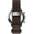 This Timex watch has a case made of stainless steel with a diameter of 41 mm and is fitted with a leather band. Inside the case lies a Timex movement and the watch features a Mineral crystal.
